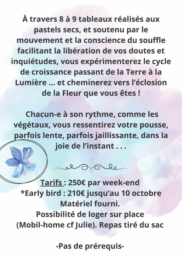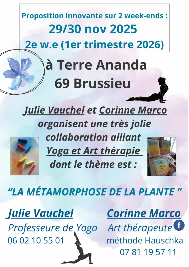 Non classé Yoga et Art Thérapie « La métamorphose de la plante » le 19/20 juillet et le 6/7 septembre par julie Vauchel|Publié 17 juin 2025 Avec Julie Vauchel et Corinne Marco