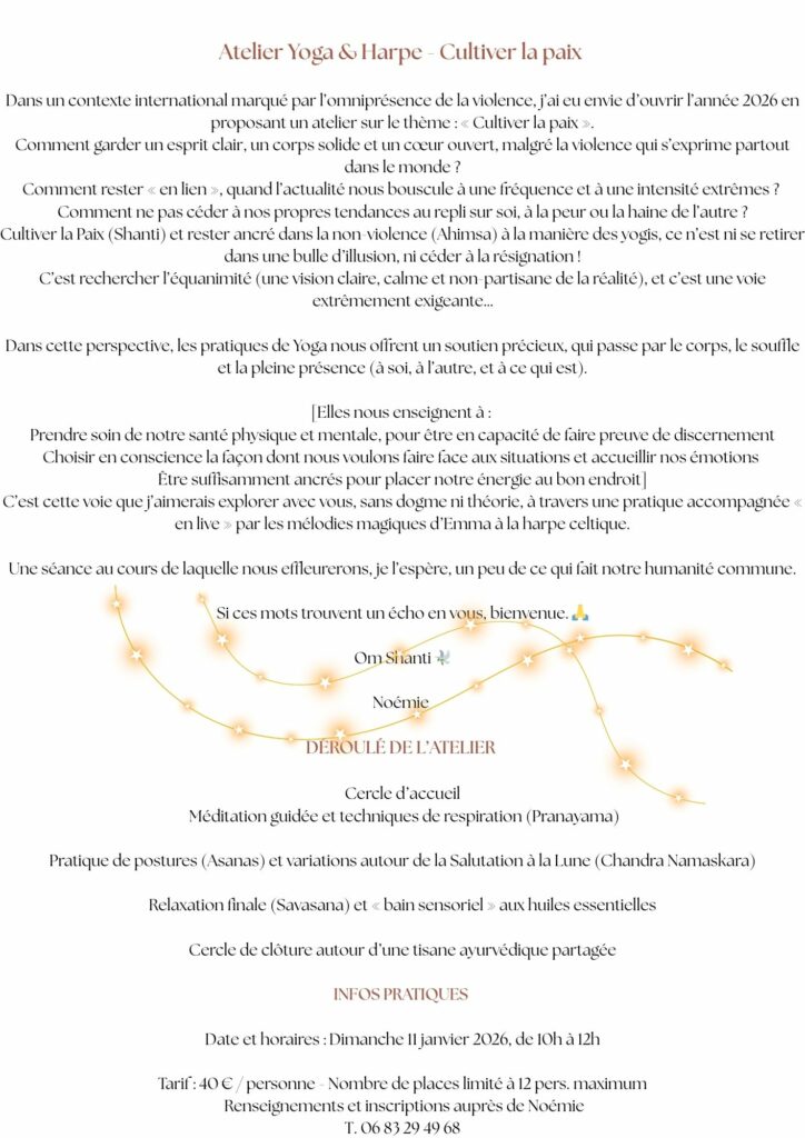 Non classé Atelier Yoga & Harpe – Dimanche 11 janvier de 10h à 12h par julie Vauchel|Publié 6 janvier 2026